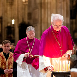 Zum dritten Jahrestag des russischen Angriffs auf die Ukraine fand im Wiener Stephansdom ein ökumenisches Friedensgebet statt, an dem Kardinal Christoph Schönborn teilnahm. Das Gebet wolle "die Stimmen der vielen Leidenden aufgreifen und ein Licht der Hoffnung inmitten der Dunkelheit entzünden. An dem Gottesdienst nahmen neben Kardinal Schönborn auch der päpstliche Gesandte in Österreich, Nuntius Erzbischof Pedro Lopez, der armenisch-apostolische Bischof und Vorsitzende des Ökumenischen Rates der Kirchen in Österreich, Tiran Petrosyan, der griechisch-orthodoxe Metropolit und Vorsitzende der Orthodoxen Bischofskonferenz in Österreich, Arsenios (Kardamakis), der für die ukrainischen Gläubigen in Österreich zuständige orthodoxe Weihbischof Maximos Rudko sowie Chorepiskopus Emanuel Aydin von der Syrisch-Orthodoxen Kirche teil; weiters etwa auch Ostkirchen-Generalvikar Yurij Kolasa, der Wiener Weihbischof Franz Scharl und Domdekan Rudolf Prokschi. Desweiteren erinnerte die Caritas bei einem Lichtermeer aus Tausenden auf dem Wiener Stephansplatz entzündeten Kerzen an das Schicksal der Menschen im Ukrainekrieg.Wir waren mit der Kamera dabei.