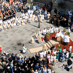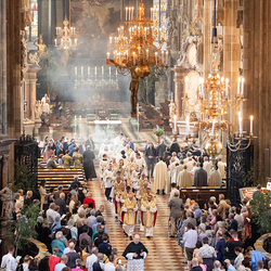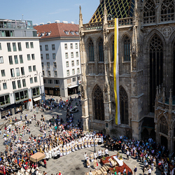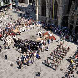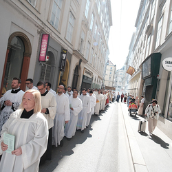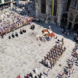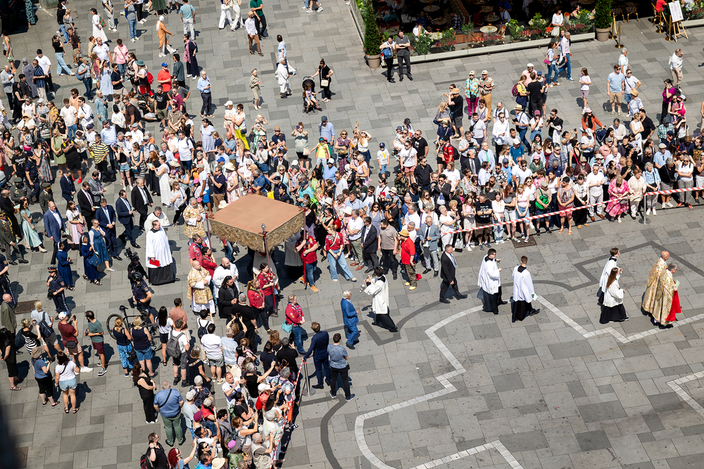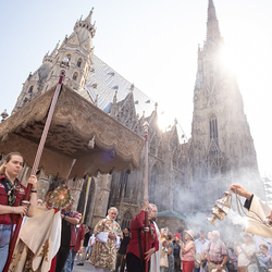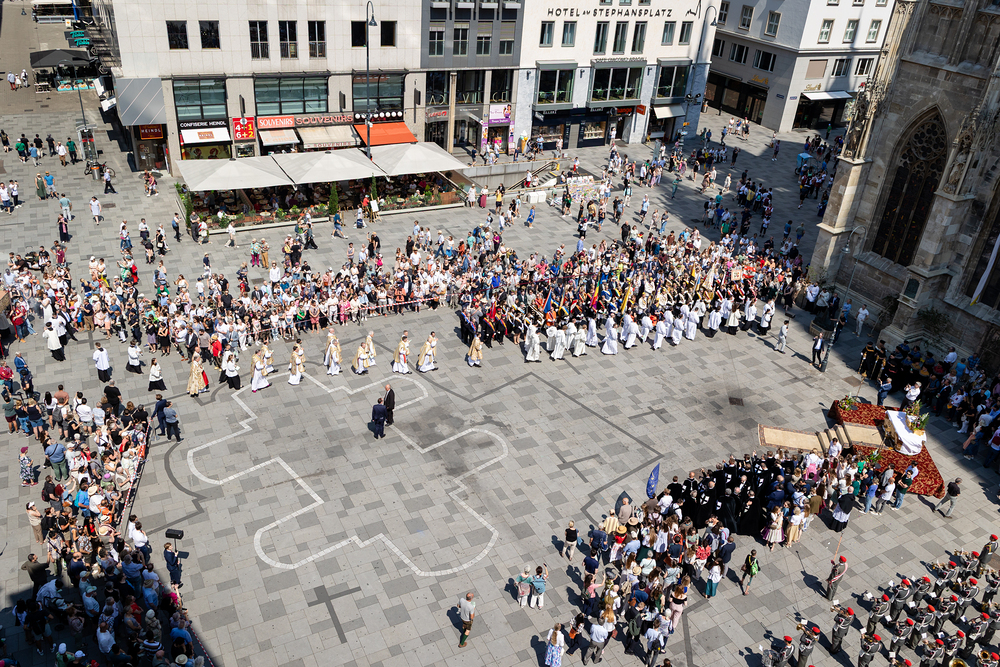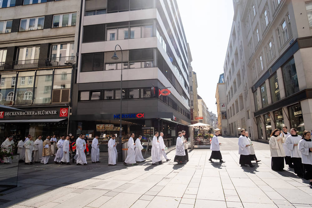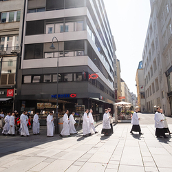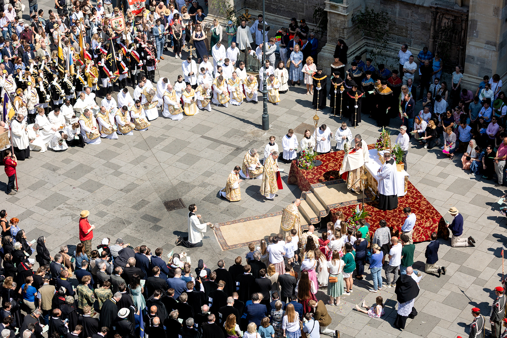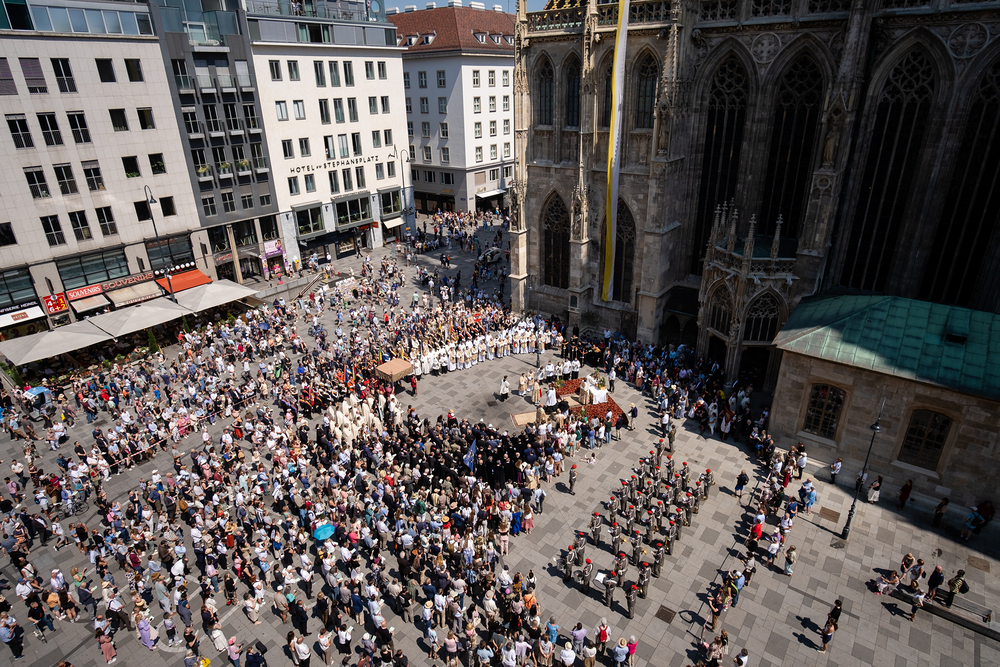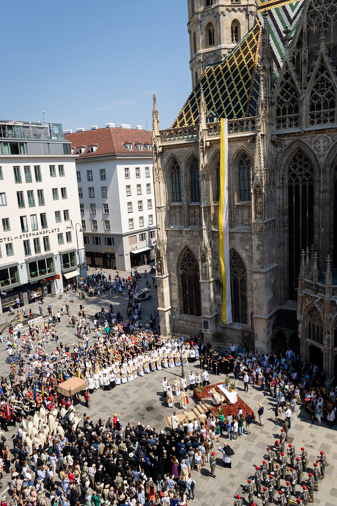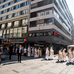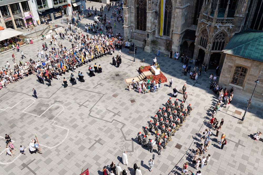 Josef Grünwidl betonte beim Stadtumzug anlässlich Fronleichnam die untrennbare Verbindung zwischen dem religiösen Feiertag und der christlichen Verantwortung, Gottes Schöpfung zu bewahren und eine „ökologische Umkehr“ angesichts der Klimakrise einzuleiten. Er dankte allen, die durch nachhaltiges Handeln und politischen Einsatz dazu beitragen, notwendige Maßnahmen zu ergreifen, um die dramatischen Folgen des Klimawandels abzuwenden. Die Fronleichnamsprozession, die vom Stephansdom ausging und Stationen am Michaelerplatz sowie am Graben bei der Peterskirche umfasste, zog erneut zahlreiche Gläubige und kirchliche Gruppierungen an. Auch politische Vertreter waren anwesend. Wir waren mit der Kamera dabei.