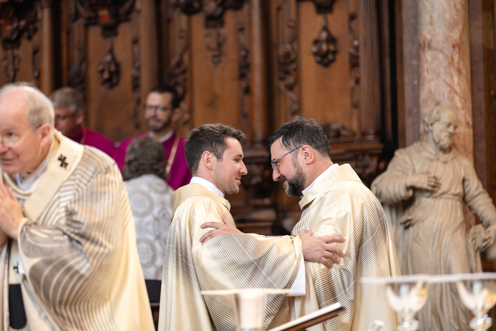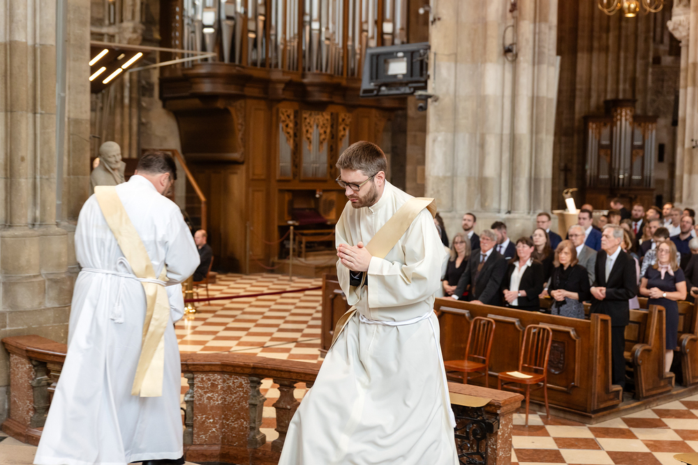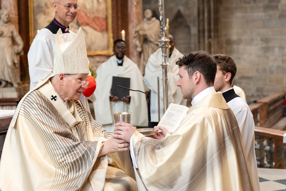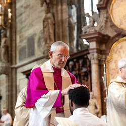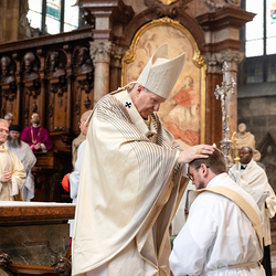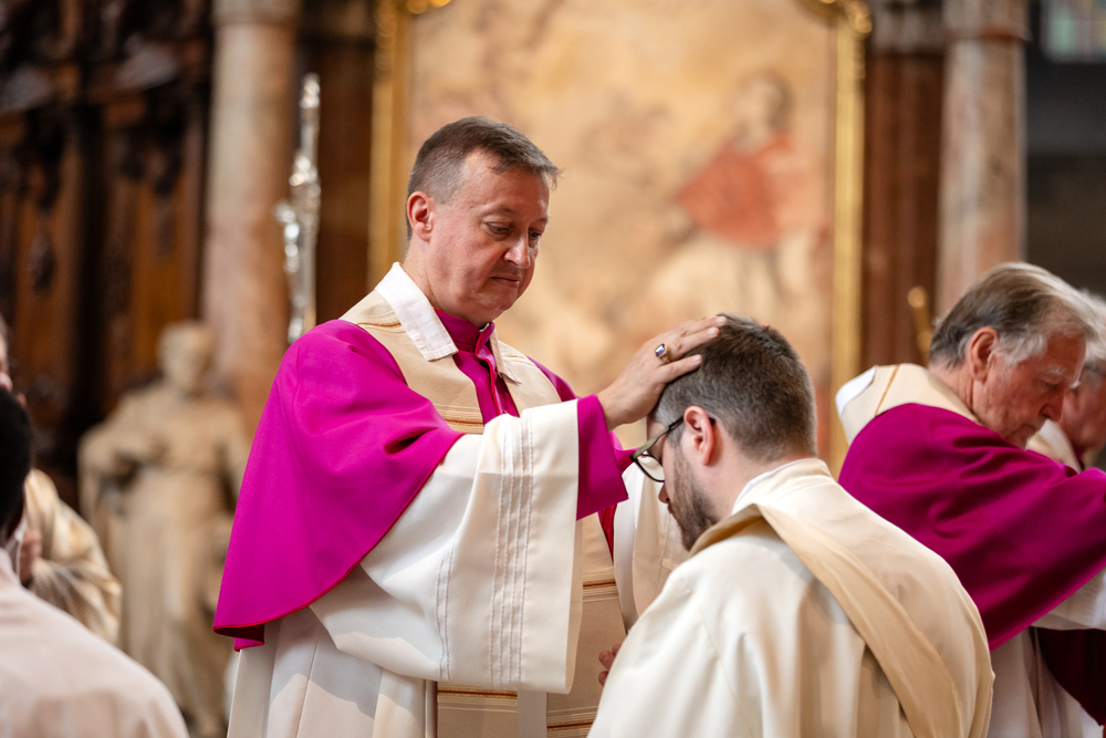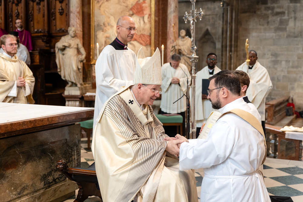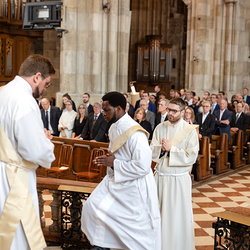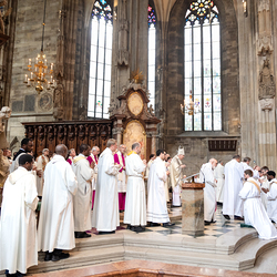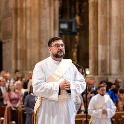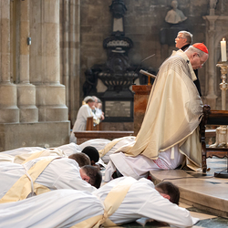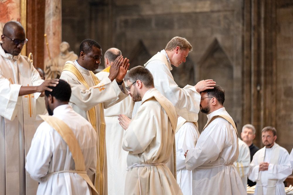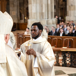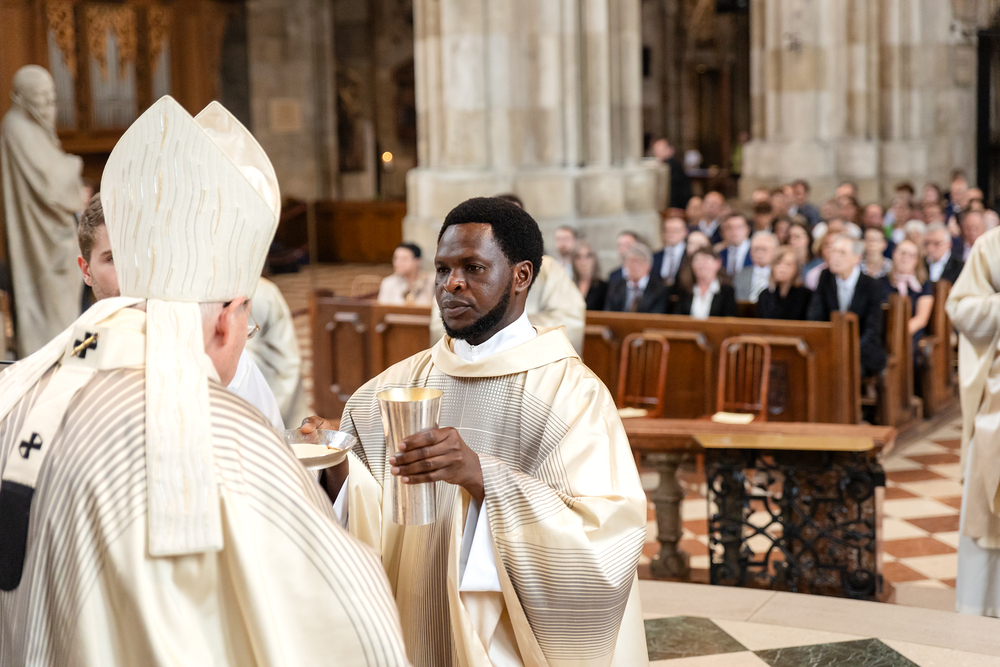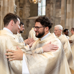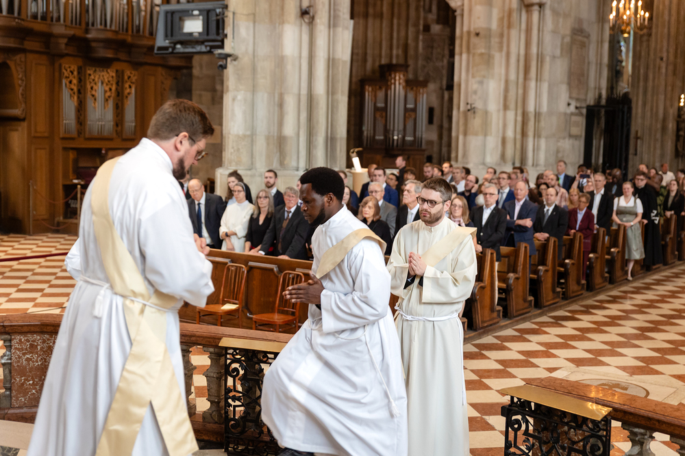 Der Wiener Erzbischof Kardinal Christoph Schönborn weiht Florian Damberger, Enrico Grube, Daniel Schmitt, Diakone aus dem Wiener Priesterseminar, sowie Michal Klucka und Chinedu Okafor, beide Salesianer Don Boscos, zu Priestern. Wir waren mit der Kamera dabei.