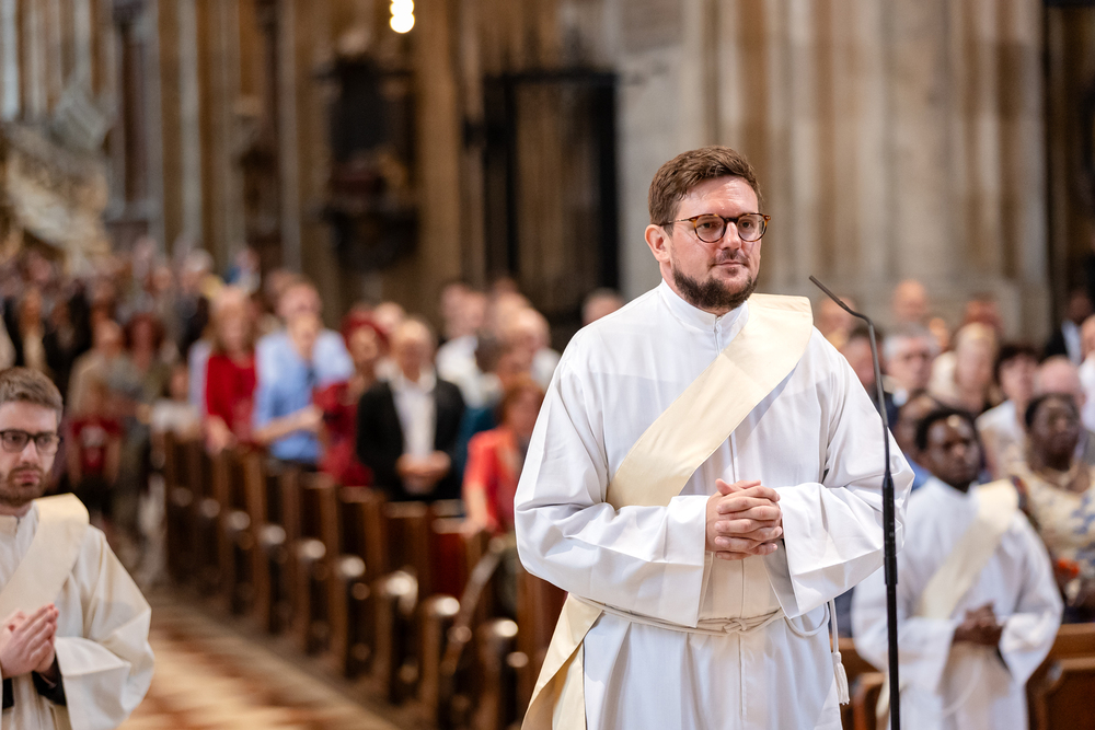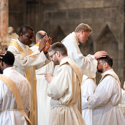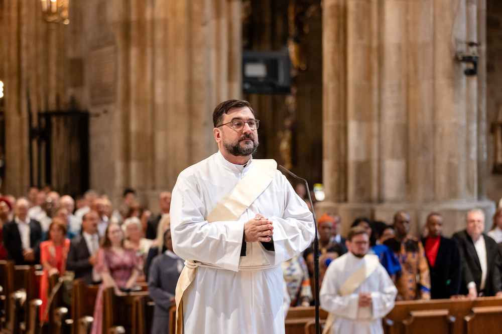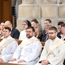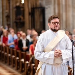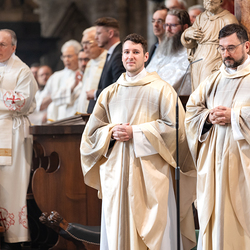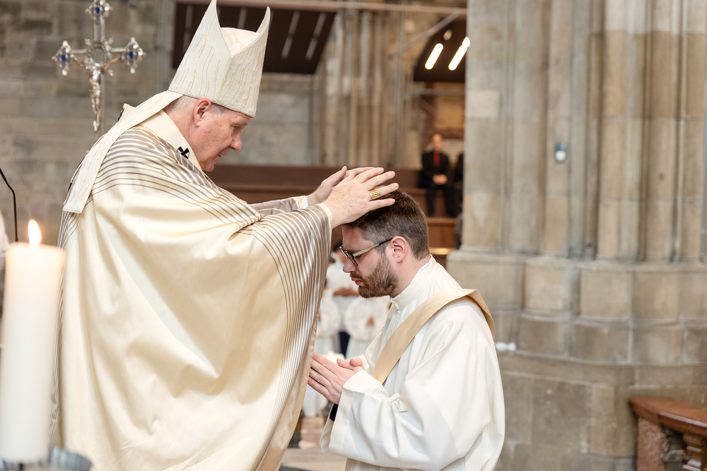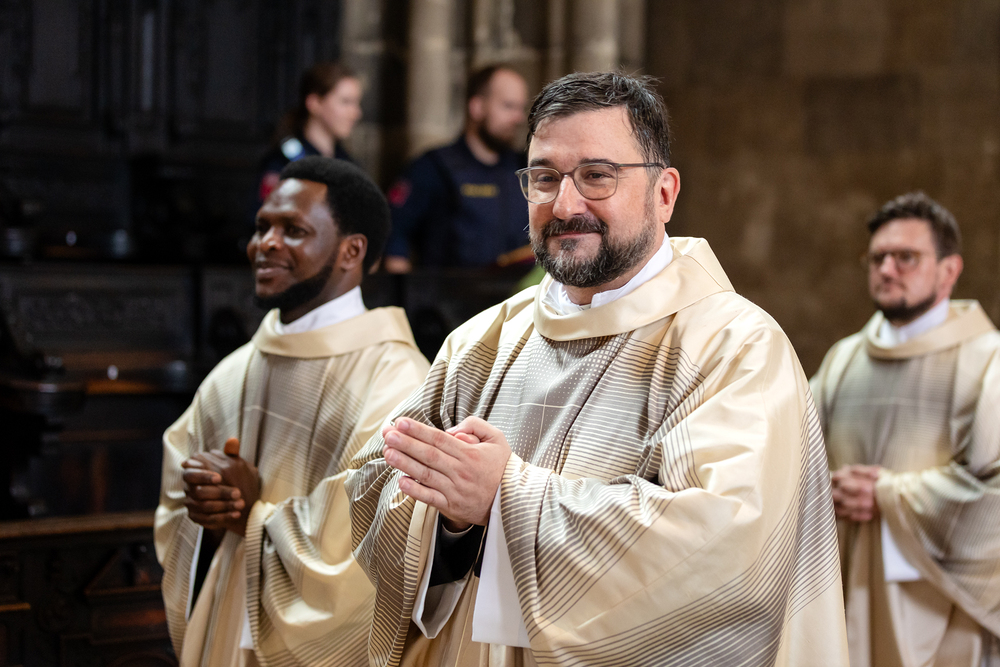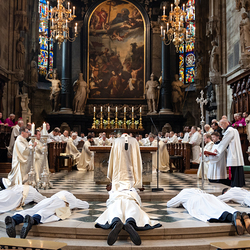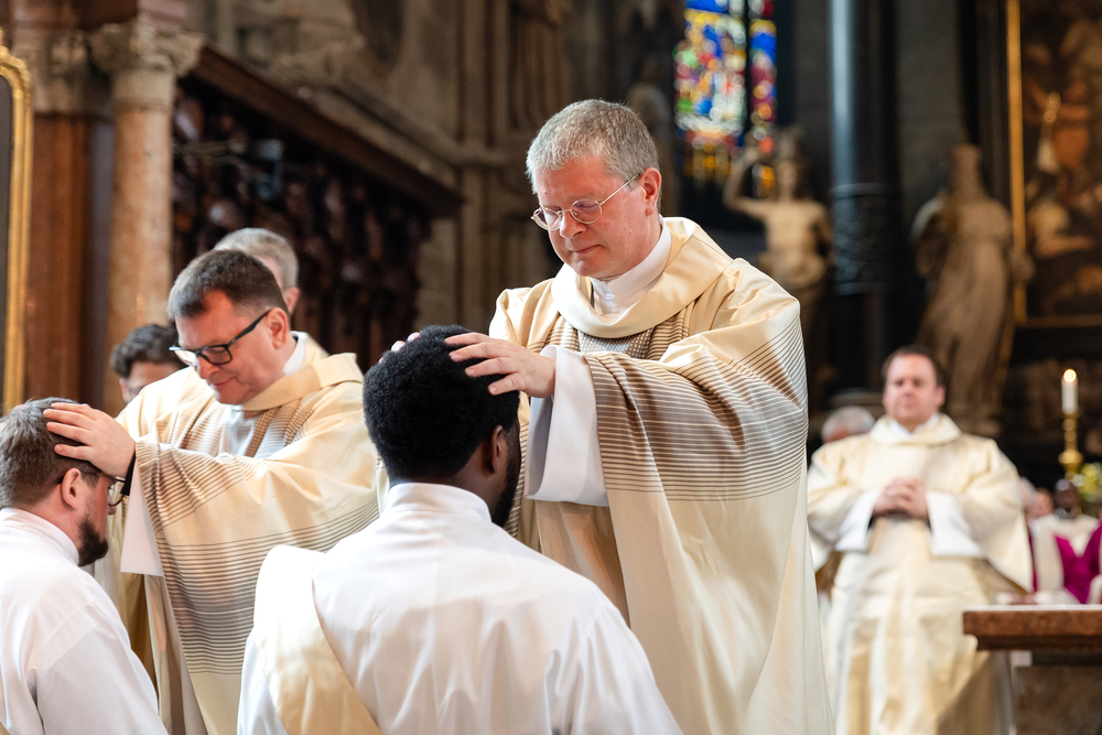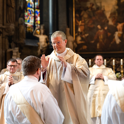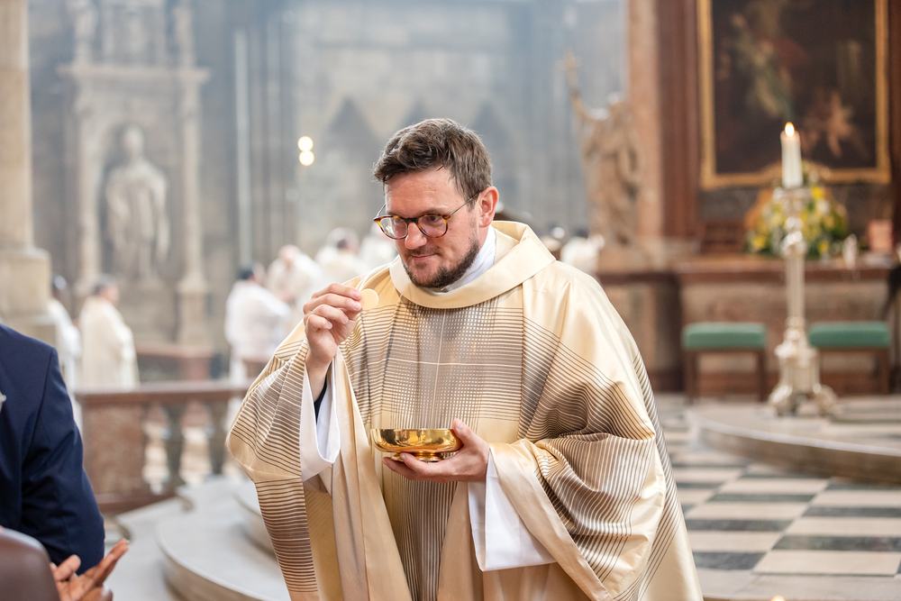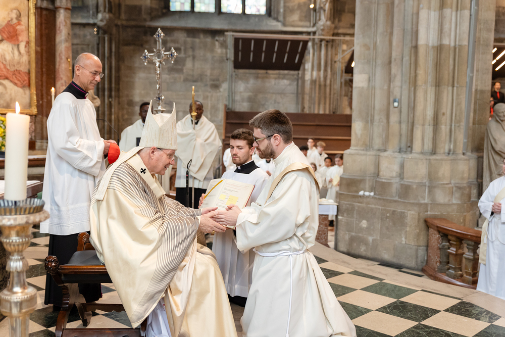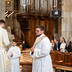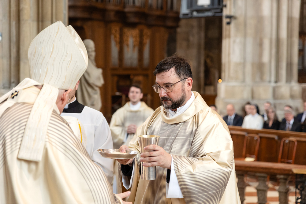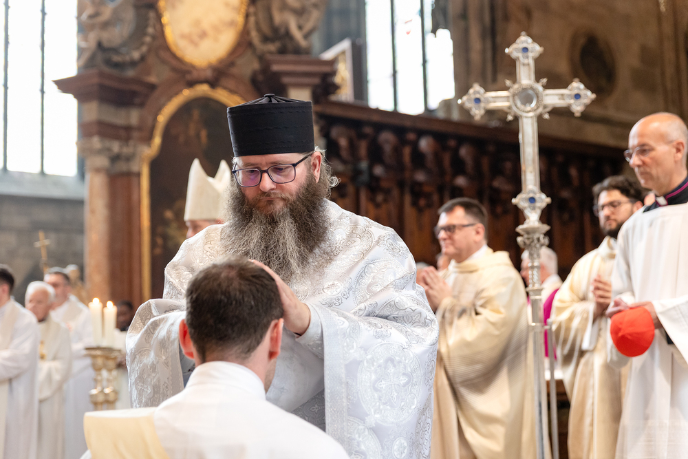 Der Wiener Erzbischof Kardinal Christoph Schönborn weiht Florian Damberger, Enrico Grube, Daniel Schmitt, Diakone aus dem Wiener Priesterseminar, sowie Michal Klucka und Chinedu Okafor, beide Salesianer Don Boscos, zu Priestern. Wir waren mit der Kamera dabei.