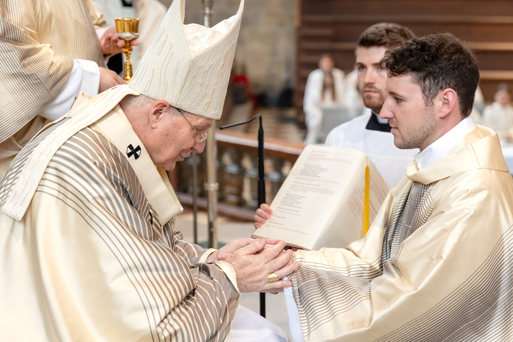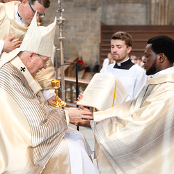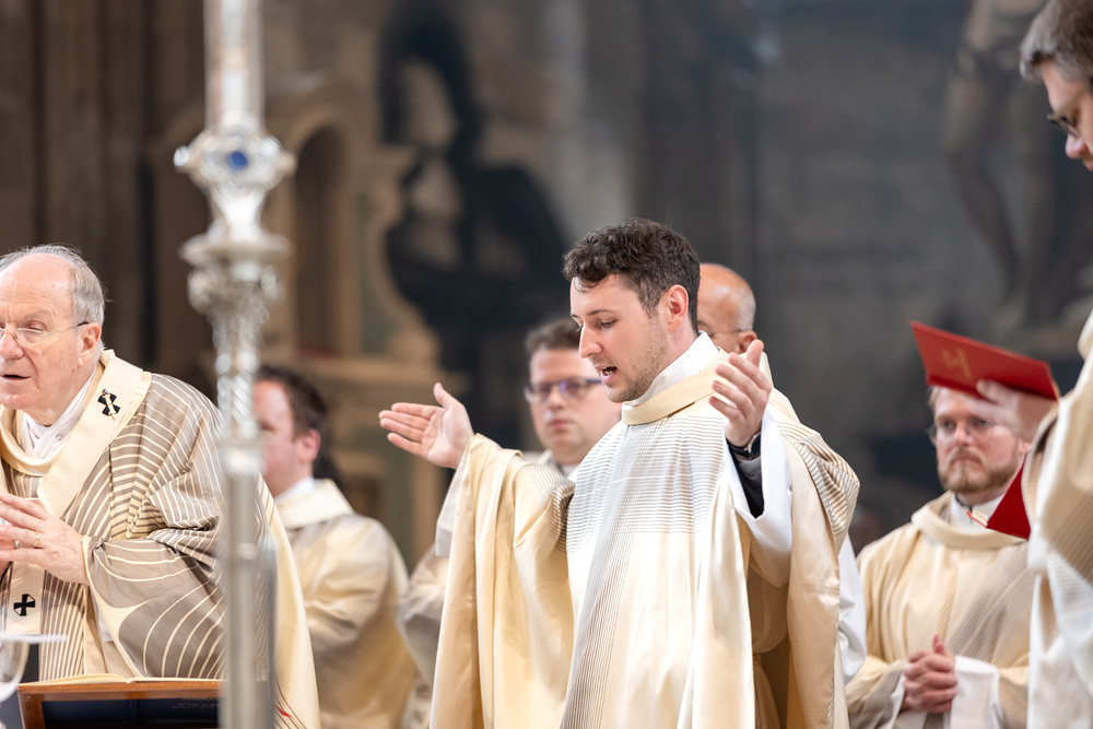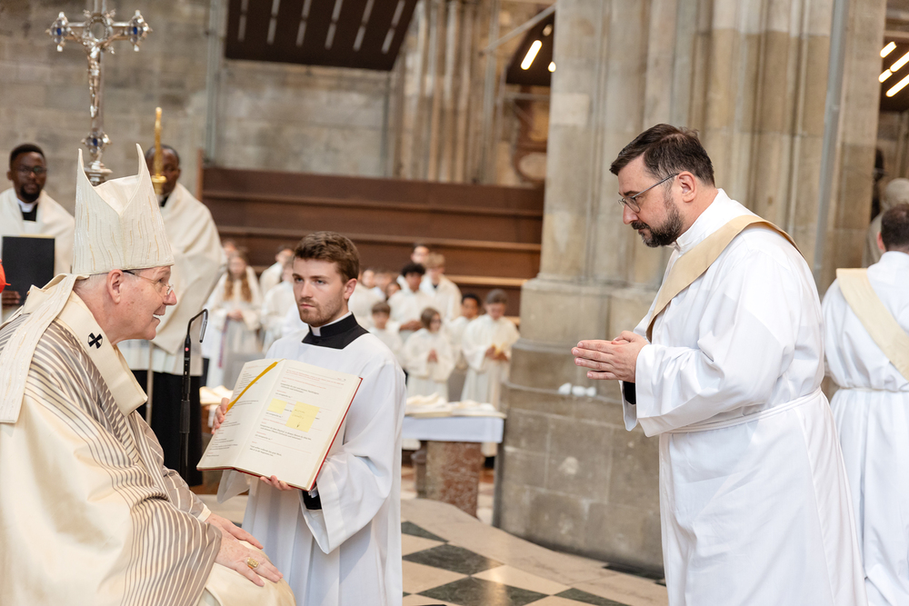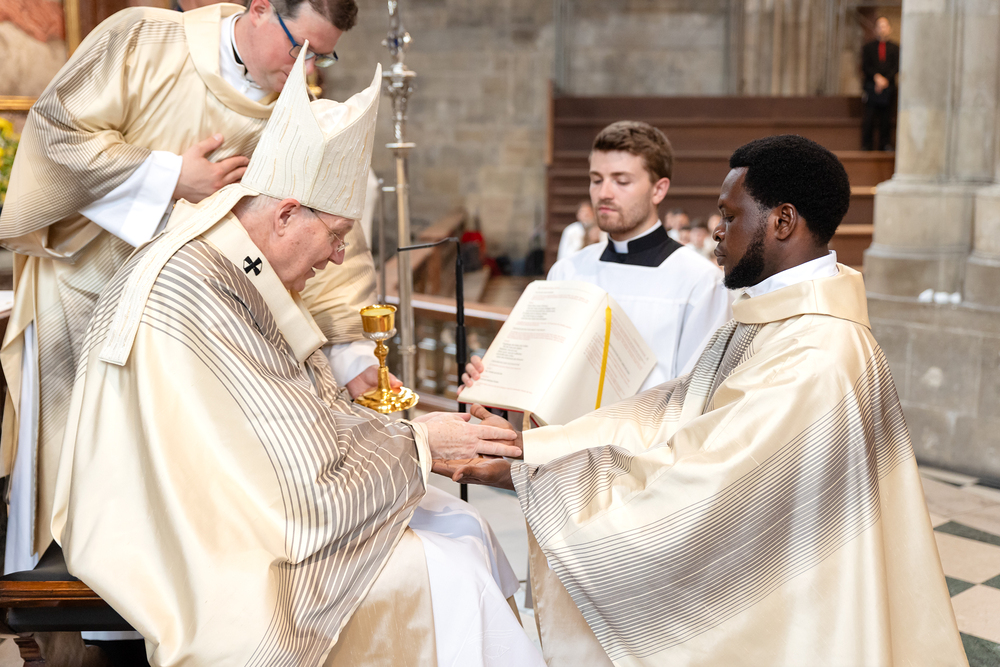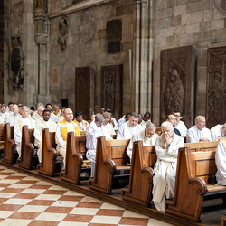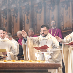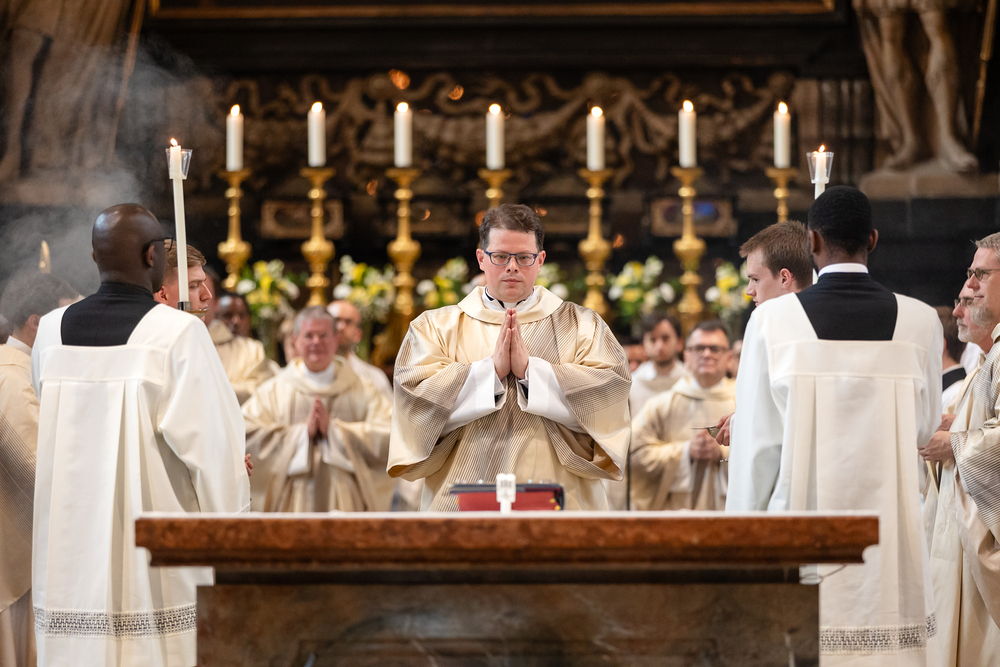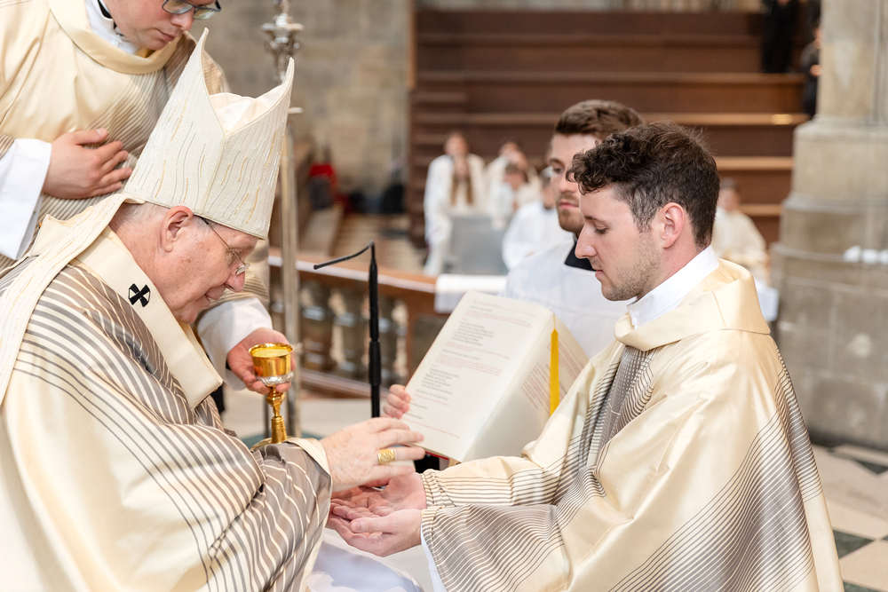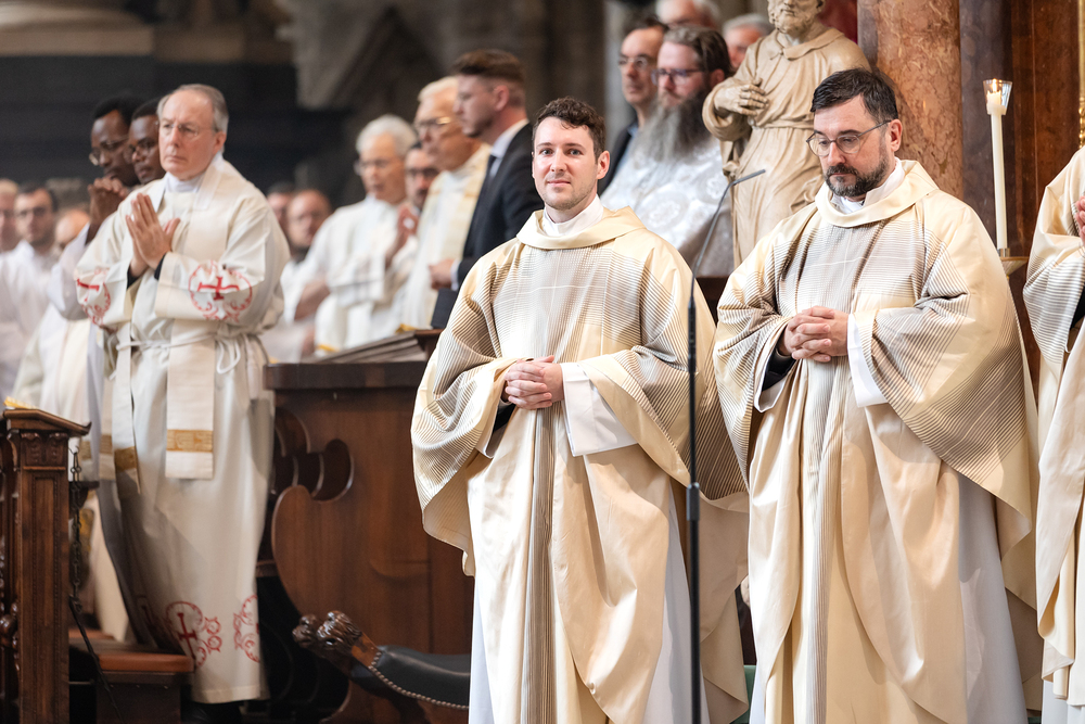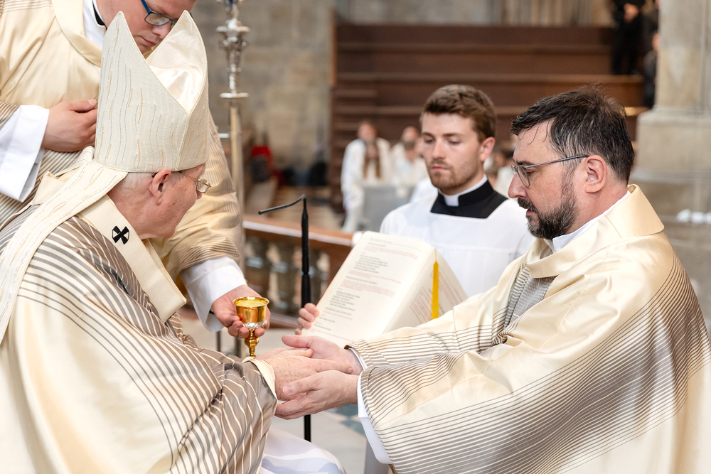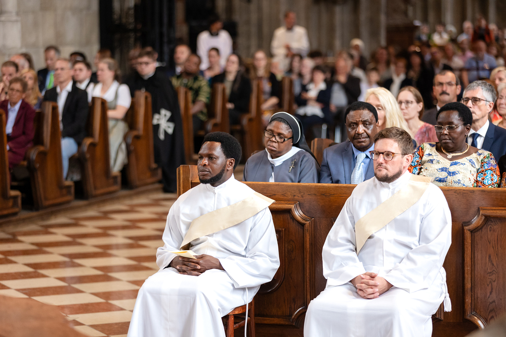 Der Wiener Erzbischof Kardinal Christoph Schönborn weiht Florian Damberger, Enrico Grube, Daniel Schmitt, Diakone aus dem Wiener Priesterseminar, sowie Michal Klucka und Chinedu Okafor, beide Salesianer Don Boscos, zu Priestern. Wir waren mit der Kamera dabei.