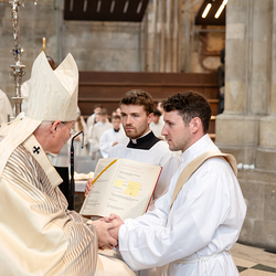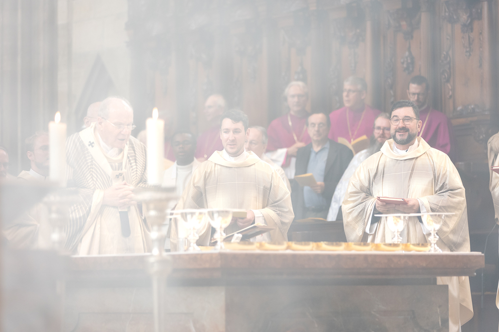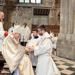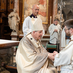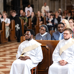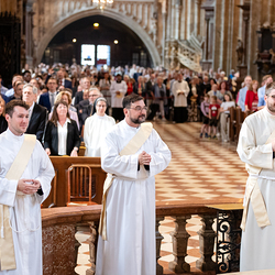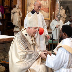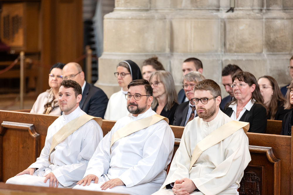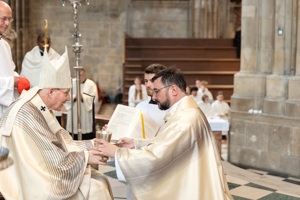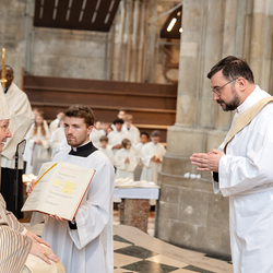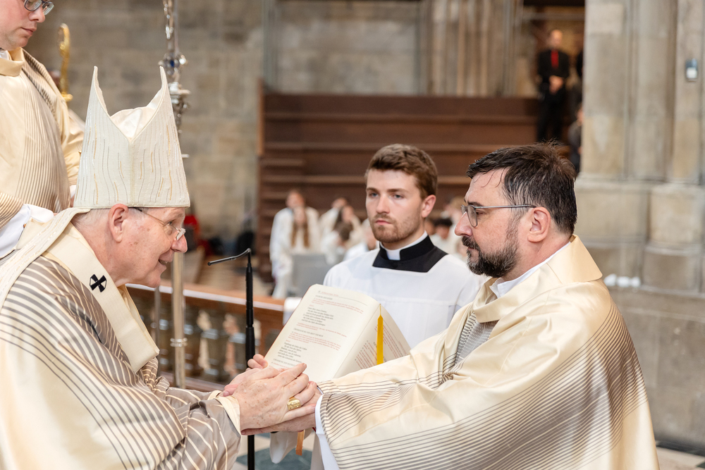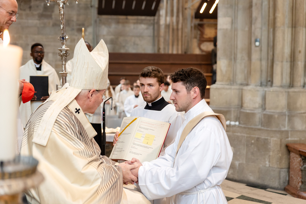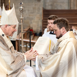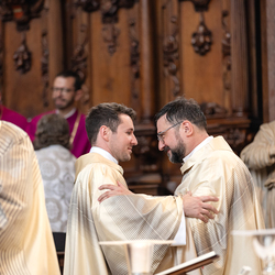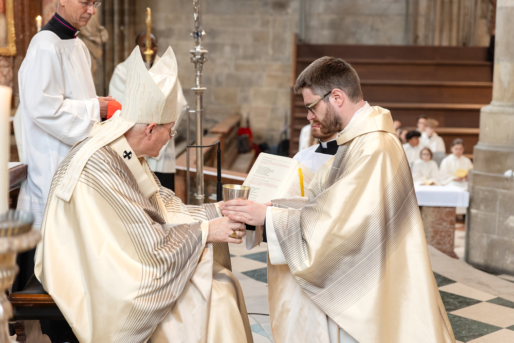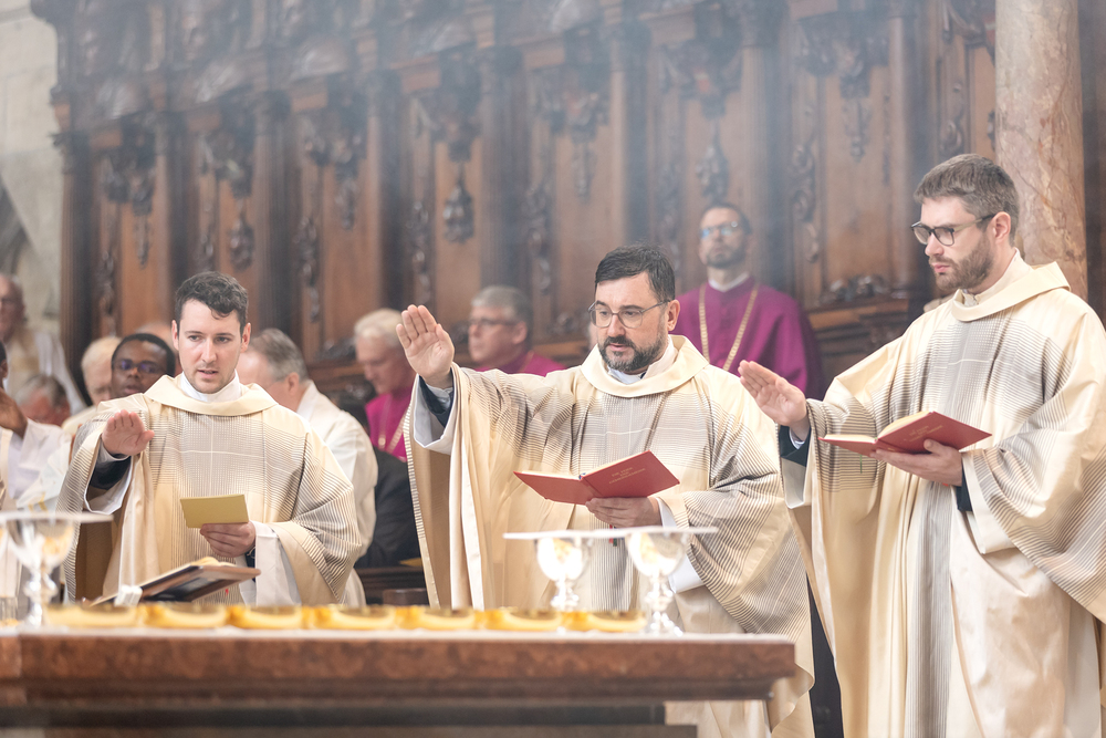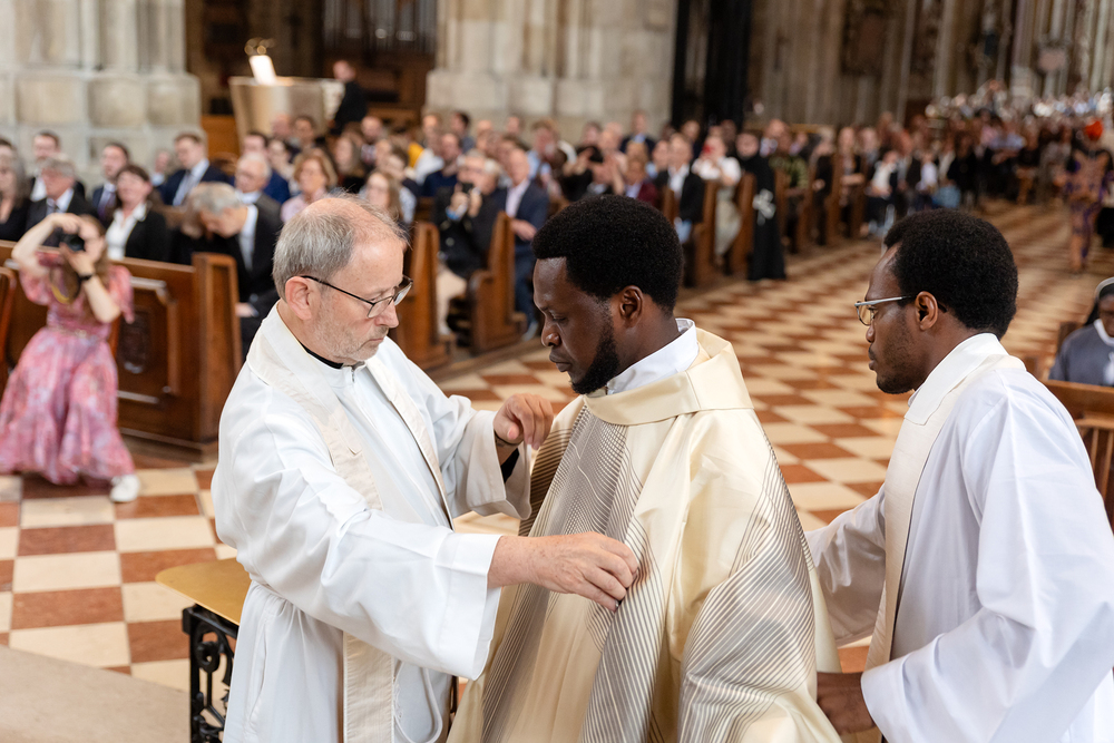 Der Wiener Erzbischof Kardinal Christoph Schönborn weiht Florian Damberger, Enrico Grube, Daniel Schmitt, Diakone aus dem Wiener Priesterseminar, sowie Michal Klucka und Chinedu Okafor, beide Salesianer Don Boscos, zu Priestern. Wir waren mit der Kamera dabei.